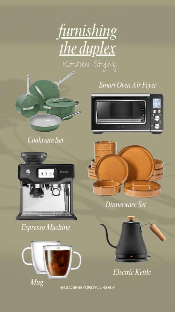 I chose to invest in statement pieces that I use daily like the Caraway cookware set and my espresso machine, because these are items that shape my routine and experience in the space.